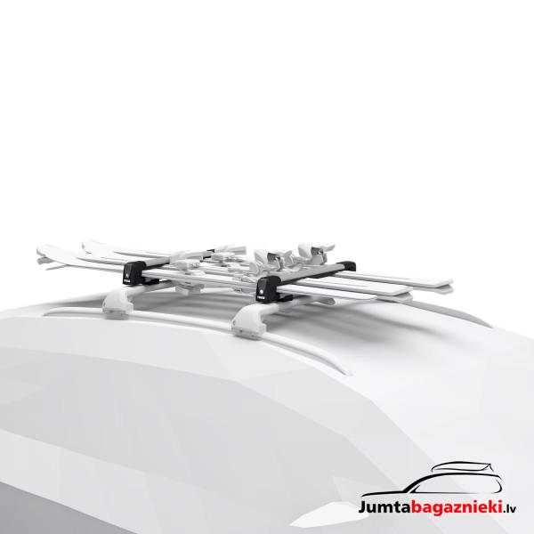 Lock the skis to the carrier, and the carrier to the car, with the Thule One-Key system (locks included).